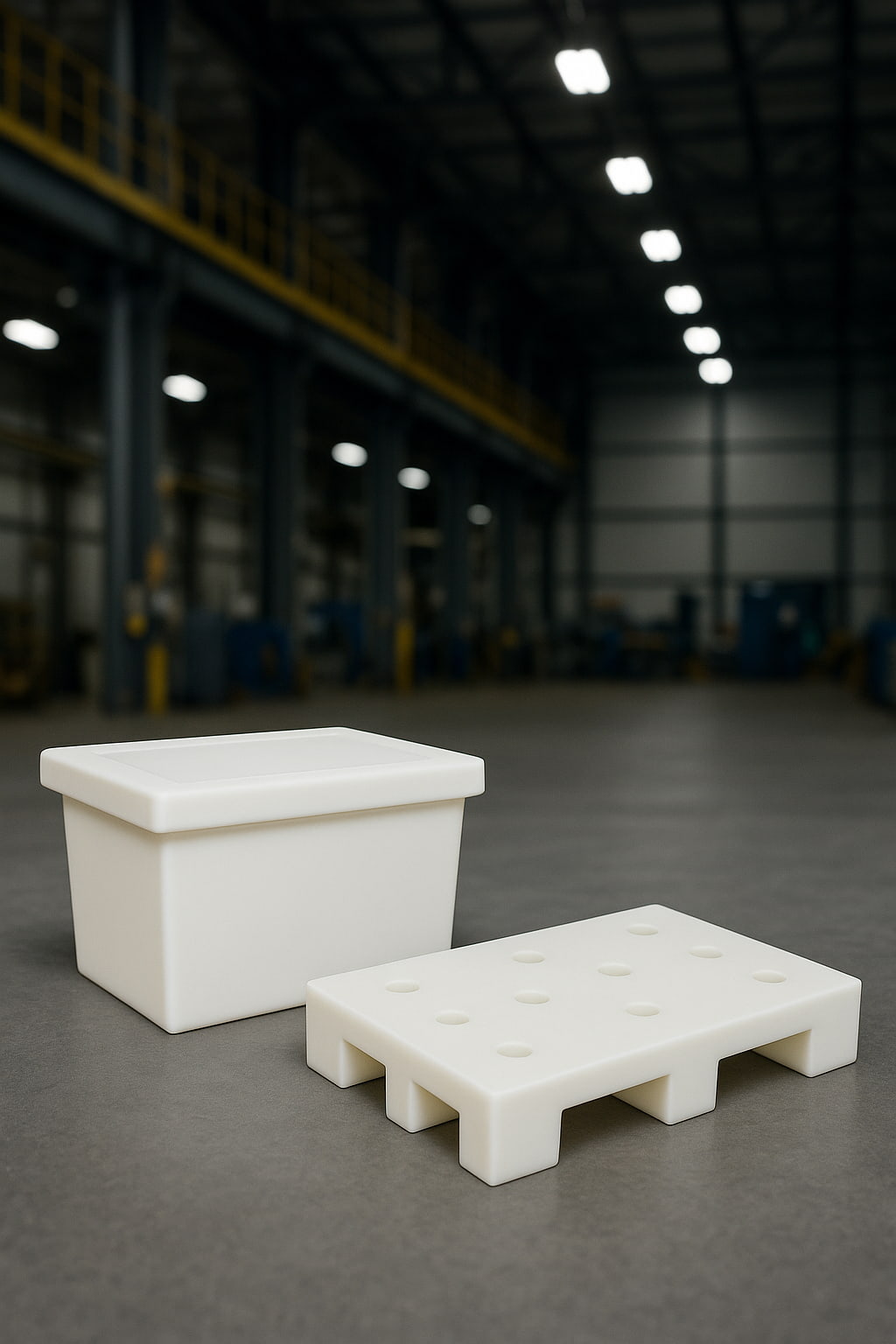 Stockage sécurisé de produits chimiques et industriels. PEHD vierge à forte résistance chimique.